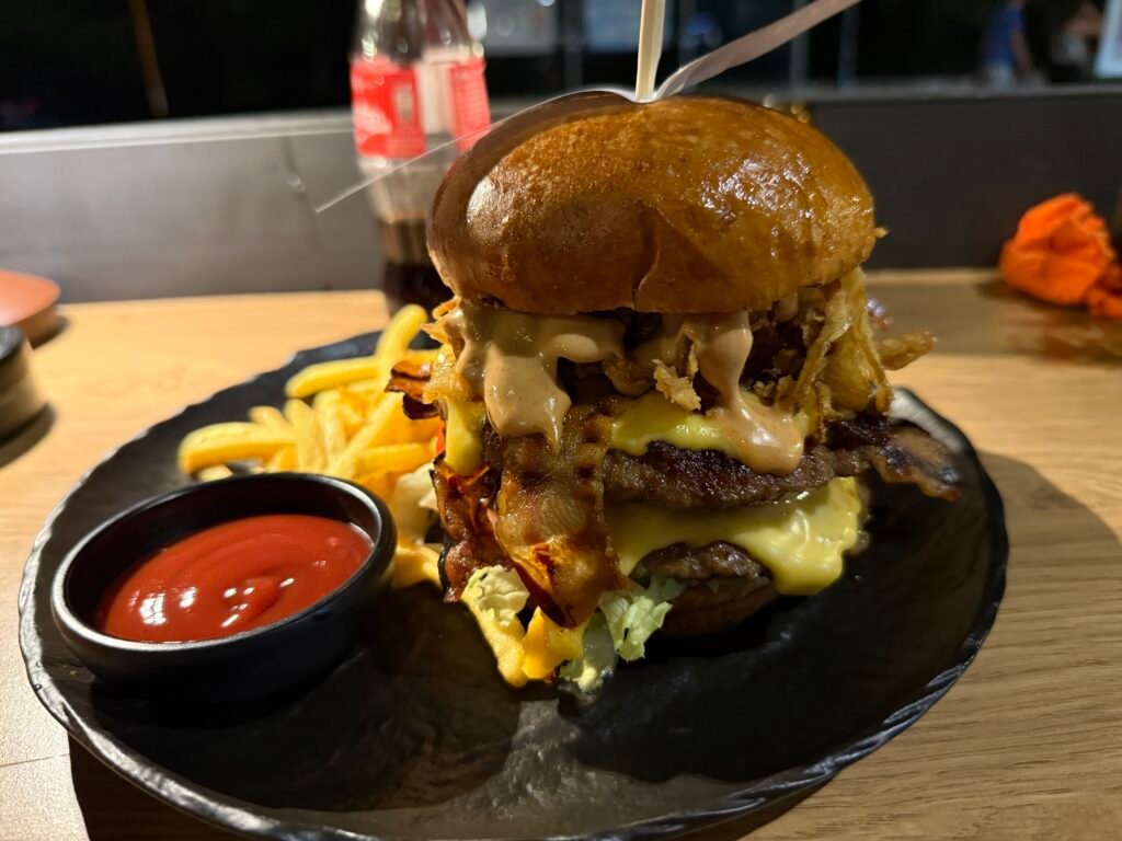 가장 클래식한 메뉴답게 무난하고 맛있었습니다. 다만 레전더리 버거와 맛 차이가 크지 않은데 가격이 살짝 더 높은 게 아쉬웠습니다.더블 트러블 버거 – 23유로